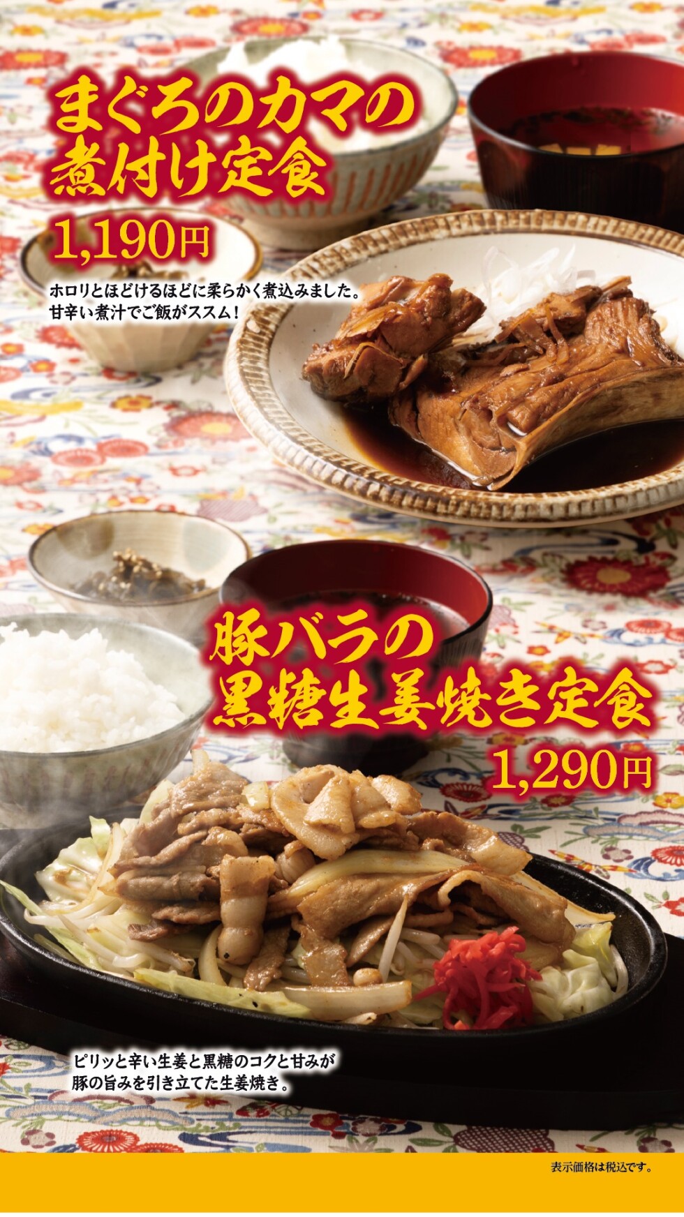 【まぐろのカマの煮付けとミニ沖縄そばセット】 1390円(税込)