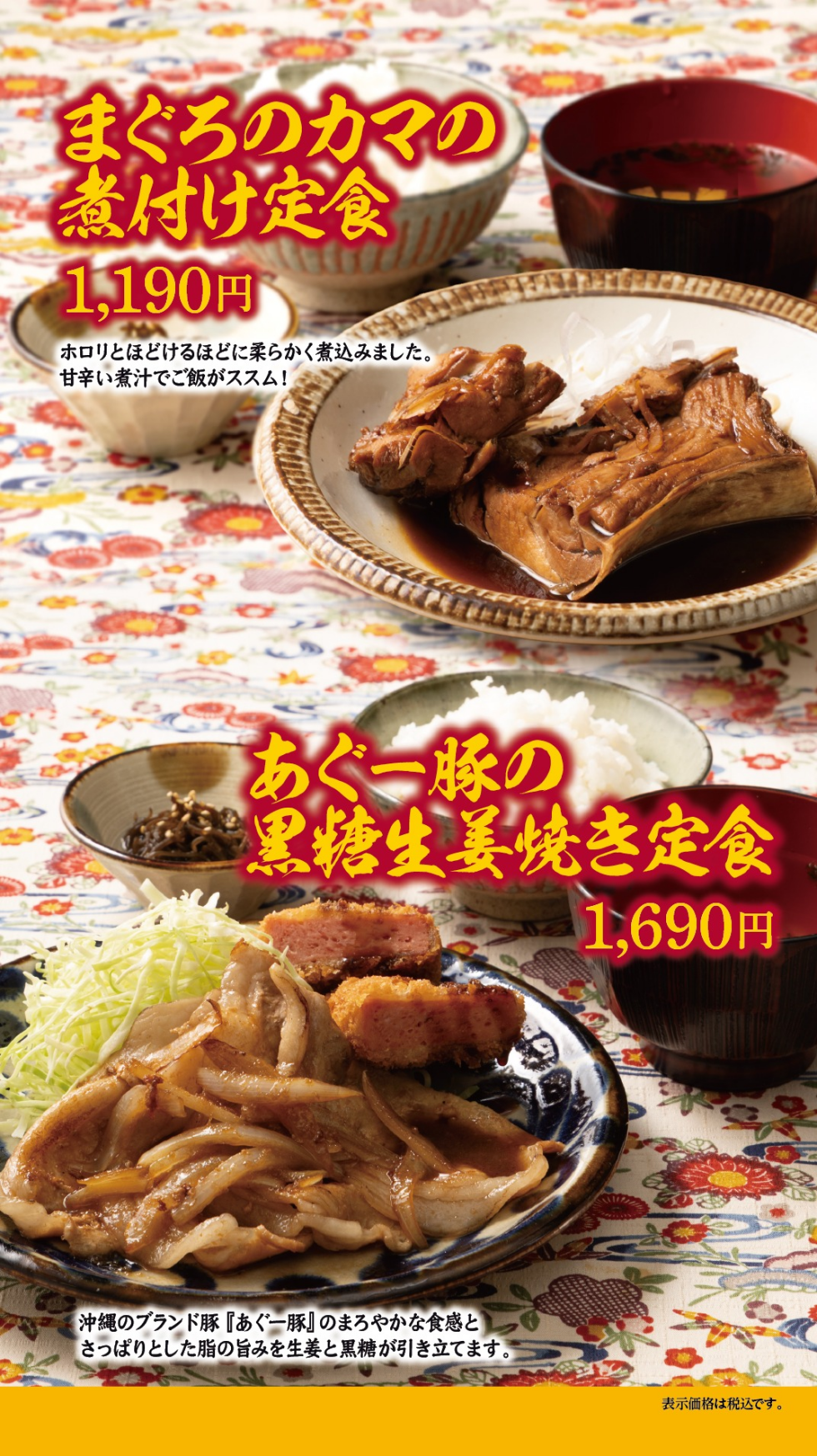 【まぐろのカマの煮付けとミニ沖縄そばセット】 1390円(税込)